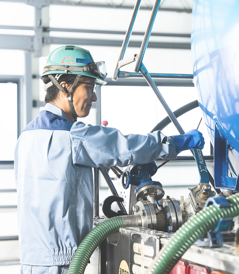 大型車両・特殊車両などを使って、工場内のインフラなどを支える重要な役割を担っています。この台数を維持できる、経営基盤の安定も強みです。